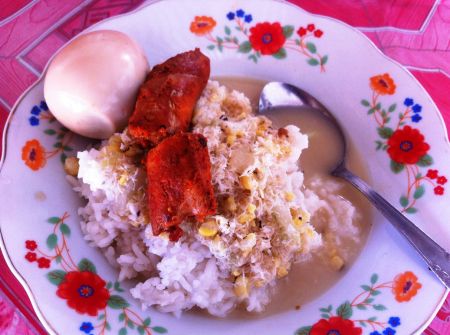 Makanan Berbahan Nasi di Campur Dengan Aneka Sayuran Dengan Kuah Santan