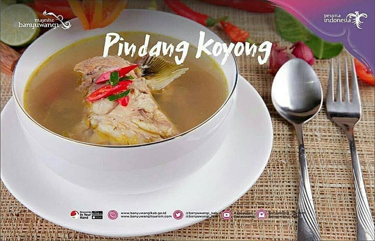 Salah satu yang terkenal dari Kabupaten Banyuwangi, yaitu pindang koyong. Pindang koyong dibuat dari olahan ikan yang dibikin berkuah. Citarasanya gurih dan asam menyegarkan.