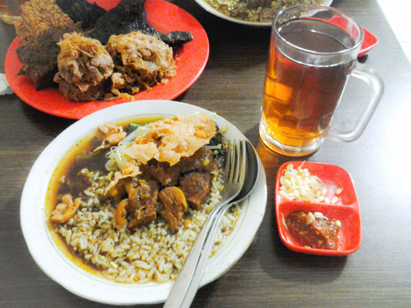 Bayangkan menyantap nasi pecel pedas dengan siraman kuah rawon yang hitam gurih. Terdengar aneh? Jangan salah, sajian perpaduan bernama pecel rawon ini memang ada dan bahkan jadi favorit dari Bumi Blambangan.